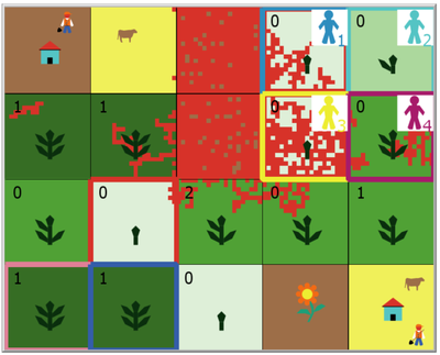 The model is supposed to be managed by the game master during A Picit Jeu game sessions, according to the decisions of the players. A number of buttons and a guideline of the game session procedures that the master has to carry on during the simulation are displayed on the Interface tab.