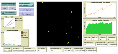 Background: Establishing a human settlement on Mars is an incredibly complex engineering problem. The inhospitable nature of the Martian environment requires any habitat to be largely self-sustaining. Beyond mining a few basic minerals and water, the colonizers will be dependent on Earth resupply and replenishment of necessities via technological means, i.e., splitting Martian water into oxygen for breathing and hydrogen for fuel. Beyond the technical and engineering challenges, future colonists will also face psychological and human behavior challenges. Objective: Our goal is to better understand the behavioral and psychological interactions of future Martian colonists through an Agent-Based Modeling (ABM simulation) approach. We seek to identify areas of consideration for planning a colony as well as propose a minimum initial population size required to create a stable colony. Methods: Accounting for engineering and technological limitations, we draw on research regarding high performing teams in isolated and high stress environments (ex: submarines, Arctic exploration, ISS, war) to include the 4 NASA personality types within the ABM. Interactions between agents with different psychological profiles are modeled at the individual level, while global events such as accidents or delays in Earth resupply affect the colony as a whole. Results: From our multiple simulations and scenarios (up to 28 Earth years), we found that an initial population of 22 was the minimum required to maintain a viable colony size over the long run. We also found that the Agreeable personality type was the one more likely to survive. Conclusion We developed a simulation with easy to use GUI to explore various scenarios of human interactions (social, labor, economic, psychological) on a future colony on Mars. We included technological and engineering challenges, but our focus is on the behavioral and psychological effects on the sustainability of the colony on the long run. We find, contrary to other literature, that the minimum number of people with all personality types that can lead to a sustainable settlement is in the tens and not hundreds.