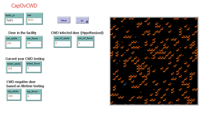 CapOvCWD is an agent-based model that simulates a captive cervid herd composed of adults and fawns. The model deer population is initialized using data on herd size and composition from captive facility records. Individual deer domiciliary history and annual CWD testing records inform the herd size and sample size (for CWD testing), respectively. The model can be used to iteratively estimate the facility level annual CWD detection probability. Detection probability estimates can be further refined by incorporating multiyear CWD testing data. This approach can be particularly useful for interpreting negative test results from a subset of the captive herd. Facility level detection probability estimates provide a comprehensive and standardized risk metric that reflects the likelihood of undetected CWD in the facility.